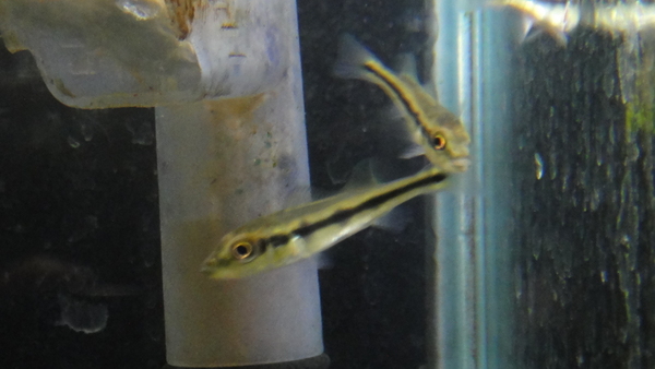 超小さいテメンシスのベビーも入荷しました。昨日アップしたインターメディアと比べてもらおうかと思って仕入れたのですが、テメンシスの方が小さすぎてちょっと比較しずらいですね・・・。でもこのサイズでも3本のバンドが出かけてたりするから、個体の発色状況によっては違いが分かってもらえるかな??テメンシスもかっこいい魚ですし、10cm位で輸入されると途端に高くなるので、小さいベビーはお買い得なのでオススメですよ!左下の画像です。