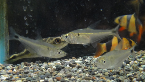 個人的に大好きな牙カラシンです!見た目も厳つくてすごくカッコいいです!小魚を好んで食べますが、人工飼料にも簡単に餌付くのでものすごく飼い易いですよ!見た目に反して性格は大人しいので口に入らないサイズの魚となら混泳も可能です!牙カラシン好きの方、中型カラシンマニアの方はぜひどうぞ!!中段左の画像です。