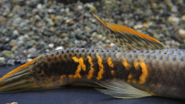 かなり久しぶりの入荷です!背ビレと尾ビレのエッジがオレンジに発色するタイガープレコで、飼い込んで大きくなった個体は存在感もあってすごくキレイですよ!