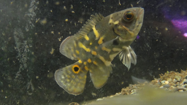 前回入荷した個体は着状態が悪くて結局死んでしまいました・・・。なので再入荷です!今日のはいいですよ!絶好調だし、サイズも前回のより大きめだし、模様なんかちょっと変わってます。まぁこの模様は幼魚のときだけの模様だから、成長につれてだんだん消えてしまいますけどね・・・。頭でっかちですごくカワイイです!ぜひこの色とこの可愛さを楽しみながら育ててみてください!