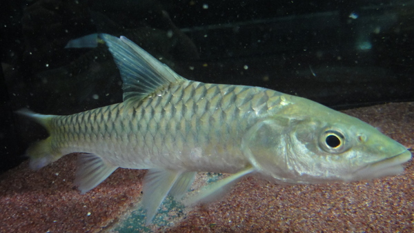ムッスラーではないのですが、このところ現地からハンプバックマハシールのインボイスで来る魚はみんなこれです。前は普通にムッスラーが来てて、その頃はこっちがすごく有難かったんですが、ここ何年かはムッスラー全然来ないから、今はムッスラーがすごく欲しい・・・。でもこのムッスラーじゃないハンプバックも大きくなるとすごくキレイになるんです!大きくなると体が真っ青になります。水槽内飼育でもちゃんと青くなりますので大型のコイが好きな方には本当にオススメ!ここ半年くらいで2~3回入荷してますが、その前は何年も入荷がありませんでしたのでいる時が買い時です!こういうマイナーな魚は入手の機会を逃すと次がいつになるか分かりませんからね!←すいません白点付きで入荷しましたのでトリートメントしてからの販売になります。ご予約はOKですのでご注文、お問い合わせお待ちしております!