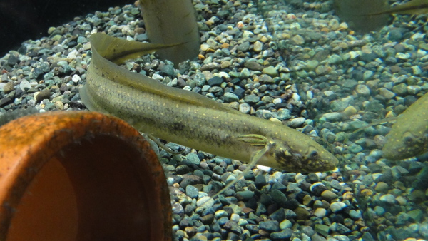 在庫のアンフィが全部売り切れたので再入荷!黄色いスポットがキレイな個体です!サイズも15cm位あるので安心サイズですね!今シーズンはたくさん輸入されてますが、数年に1度しか輸入されない希少な肺魚ですから、気になる方は今のうちに手に入れておかないと後で後悔しますよ!左上の画像です。