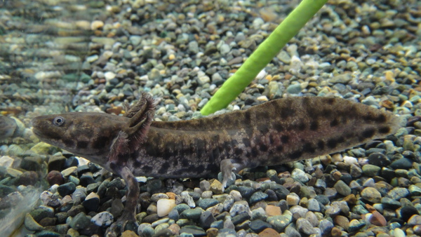 アンダーソン再入荷!ウーパールーパーみたいな感じですが成長すると体の模様がはっきりしてきてタイガーサラマンダーみたいになりますよ!タイガーサラマンダー模様のウーパーみたいな感じですごくイカしてます!左下の画像です。