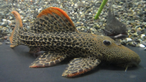 本物のクイーンセルフィンが当店にもついに入荷!しかもこんな小さなプレミアムサイズ!!こんなチビサイズでもクイーンセルフィンのオーラがすごいです!まだ背ビレはそんなに大きくないですが、背ビレの付け根の幅がすごく広いので成長してヒレが大きくなって来ればかなり見応えのある姿になってくれるはず!体色もすごく良いですよ!赤味の強い茶色のベースに明瞭な大きめのスポットがびっしりです!入荷の少ない激レアなプレコですからお探しだった方も多いのでは??入荷は1匹のみです!本来はかなり高価なプレコですが小さめで入荷したので今回はお買い得です!お見逃しなく!!上段の画像です。2つの画像は同一個体です。