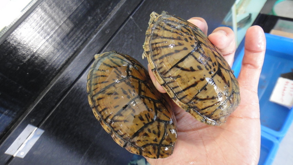 ピカピカのCBベビーが入荷です!甲ズレや尾切れ、爪欠けのない完品で、餌食いも良好で人工飼料をバクバク食べてますよ!セマルのベビーは本当にかわいいです!丈夫で飼いやすいカメなので超オススメです!下段の画像です。2つの画像は同一個体です。