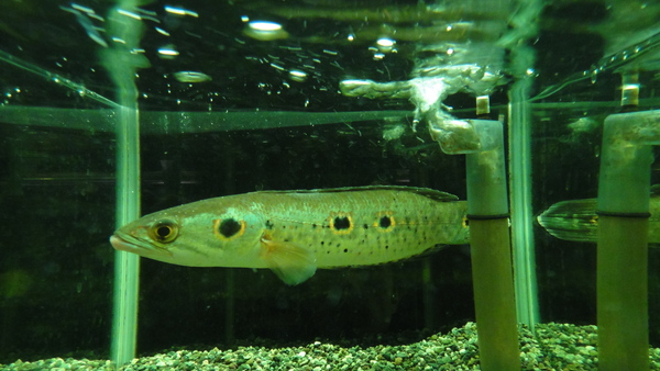 大きめでキレイな個体が入荷です!スネークヘッドの中では大人しい種類なので混泳もさせやすくて人気です!右下の画像です。すいません、ただ今白点病のトリートメント中です。