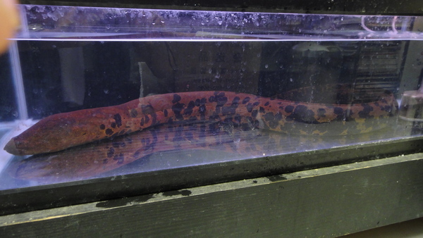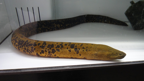 ビッグサイズのアナコンダシンブランクスが入荷!しかもここ何年かは大型個体の入荷がなかった元祖タイプです!かなりマニアックな話になりますが、アナコンダシンブラクスの名前で実は2種類のシンブランクスが流通してます。幼魚で輸入されてるのはおそらくこの元祖タイプの幼魚だと思いますが、大型個体ではスポットの色が薄く不鮮明で顔が少し短いタウナギも同じ名前で輸入されています。どっちもキレイでかっこいいのですが、この元祖タイプは5~6年ぶり位?に大きいのが見られたのでちょっと興奮してます!日本に何人いるかは分かりませんが、こういうタウナギに目がないというマニアの方、ぜひどうぞ!!過去に入荷した別タイプのアナコンダシンブランクスも画像載せておきますので比べてみてください!ちなみにこの別タイプも当店では2年前に大きいのが入荷してからそれっきりなんでこれもかなりレアなんですけどね。上段、中段左の画像が今回入荷した個体で、3つの画像は同一個体です。中段右が以前に入荷した元祖タイプの150cmの個体です。下段が以前に入荷した別タイプの個体で、2つの画像は別の個体です。