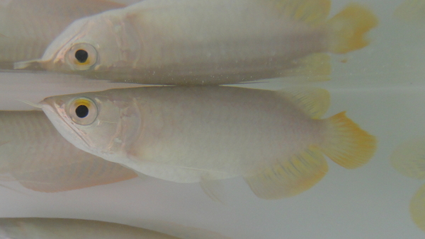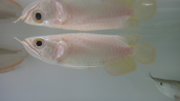 ショートのアロワナはたまに入荷していましたが、ノーテールの入荷はかなり久しぶりです!尾ビレだけキレイに無くなったハートテールの個体です。顔付も尖りぎみでスタイルもいいので、かっこよくてかわいいオススメのアロワナです!他の人とは違ったアロワナをお探しの方には特にオススメの1匹です!上段の画像です。2つの画像は同一個体です。
