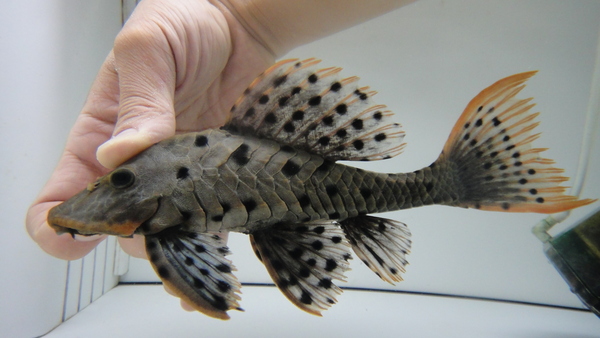 久しぶりに入荷!コケも掃除してくれるし見た目もキレイですごく良いプレコ!サイズも大きくなる種類ですから大型魚との混泳にも良いと思います!それとコイツの一番のオススメポイントは歯が柔らかくてコケ掃除してもほとんどアクリルにダメージが無いということ!口を触ればわかります!歯が他のプレコみたいに硬くありません!セール期間で安くなってる今がチャンス!中段右の画像です。