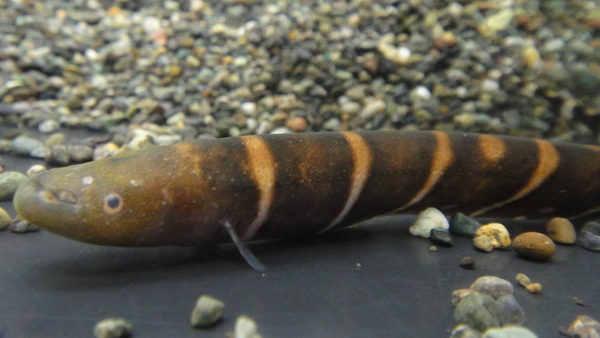 謎の南米ナイフです。南米産のナイフの入荷はほとんどペルーからなんですが、これは珍しいブラジル産で、産地はトカンチンス川の河口付近らしいです。インボイスはカラポだったんですけどね、どうもギムノートゥスではないですね。詳細は不明ですが産地からしてもかなり珍しいナイフだと思います!バンド模様と透明感のある体色がキレイです!1匹のみです!