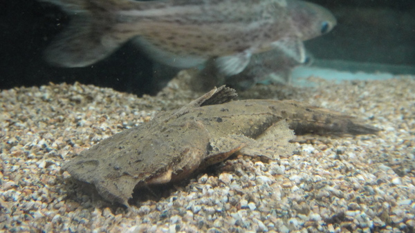 飼い易いチャカです。平たい独特の体型とグロテスクな顔つきが特徴的です。生き餌を好むので人工飼料はほとんど食べませんが、当店のお客様では人工飼料に餌付けた強者マニアの方もいますので不可能ではないようです!まぁうちでは無理しないで普通に小赤あげちゃいますけどね・・・。中段右の画像です。