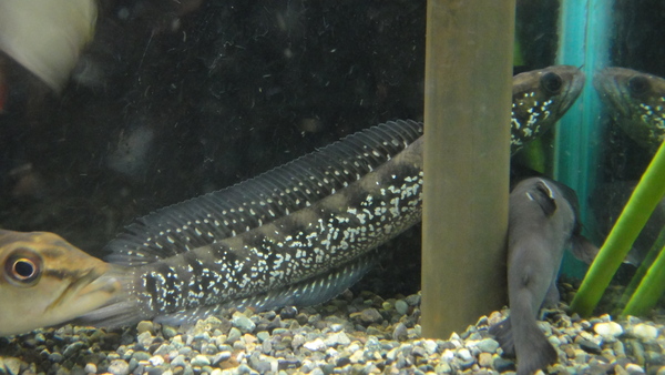 スリナムの新産地からニュータイプのアイスポットが入荷しました!ブロコポンド産に似ていますが、体側の模様がバンドにならず細いゴールドラインで縁取られた明瞭なスポットになっています。オリノコエンシスとブロコポンド産を足して2で割ったような感じですかね?成長につれてどういうふうに模様が変化するのか、これからどう発色するのかが楽しみです!国内に輸入された数も僅かと聞いています。当店への入荷は2匹のみです!アイスポット好きの方、コレクターの方は必見です!中段右の画像です。