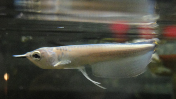 プラチナブラック入荷です!実は10日前にも1匹入荷していましたので、在庫は2匹います!これで今シーズンは3匹目!!今年は久々の当たり年ですね!今日入荷のちょっと大きい方はもうほとんど体側の黒いラインが抜けてきていてほぼ真っ白です。もう1匹、10日前に入荷した方は来たとき5、5cm位で大きなヨークサックをぶら下げていましたが、餌をバクバク食べて今ではヨークサックもなくなりサイズも1回り以上大きくなりました!色もだいぶ白くなってきていますが、体側の黒いラインはまだ残っている状態ですね。でもこれももう一回り大きくなれば真っ白になっちゃいますよ!どちらもクオリティの高い個体ですのでオススメですよ!上段がちょっと大きい個体で下段がちょっと小さい個体の画像です。2つの画像はそれぞれ同一個体です。