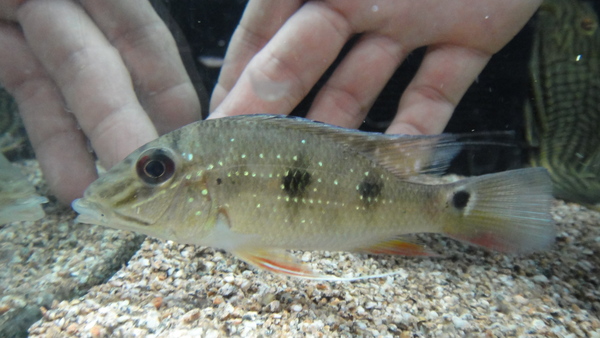 ダエモンに混じって輸入されるコロンビア産のサタノです。今回ダエモンを注文したら1匹これが混じってきました。ジュルパリとレウコの中間みたいな魚ですね。