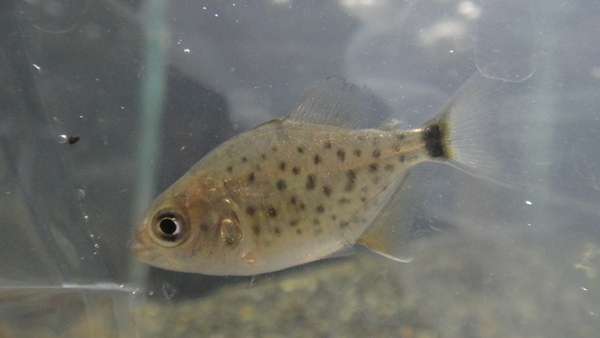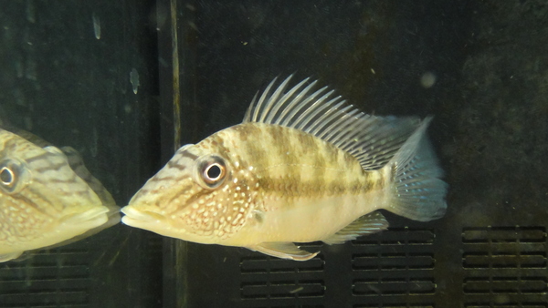 ペルー産のスポットメチニスで、体型が四角いやつです。大きくなるとヒレや喉の辺りの発色も鮮やかになりかなりキレイになります。個人的に大好きなメチニスなのでオススメですよ!これはこんなに安く売るのがもったいないです!中段左の画像です。