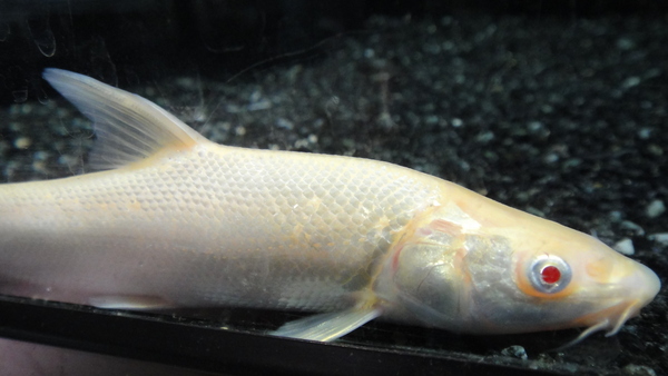 コレイウスspのインボイスで入荷しましたが、ヒゲは2対4本あります。本当にコレイウス属の1種なのかは不明ですが、スーパーマニアなお客様に聞いた話では、これはバルブス属の1種のバーベルのアルビノではないかとのこと。バーベルもノーマル体色のベビーが数年に1度輸入される程度ですからね、どちらにしてもすごく珍しい魚です!以前これの大きいのが国内に輸入されたことがありましたが、その時は余裕で2桁万円代の金額でした。なので今回のは小さい分かなりお買い得ですよ!上段の画像です。2つの画像は同一個体です。1月15日追記:多数のお問い合わせありがとうござました。すいません、画像アップする前に売約になってしまいました。
