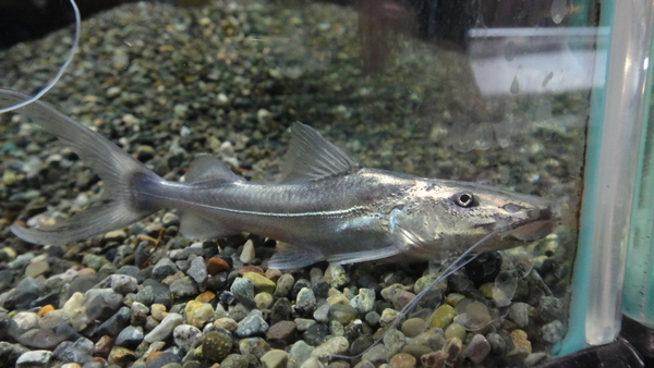 在庫の個体が売れたので再入荷!大きくなるとメタリックなシャンパンゴールドがビカビカで超キレイなナマズになります!鼻先をぶつけやすいので広めの水槽で育てましょう!中段右の画像です。