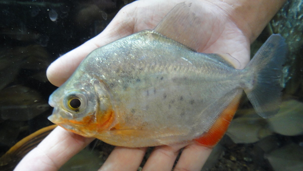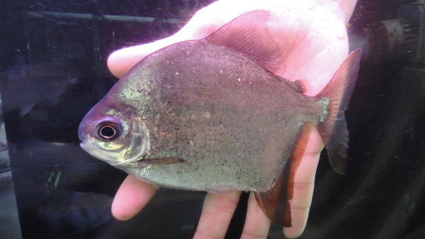 すごく変わった面白いパクーが入荷しました。カウアのような体型ですが、顔が全然違います。なんか丸っこくて鼻先が厚い顔をしています。前にデミニ産のジャイアントパクーっていうのが入荷したことがありましたが、あれに似てる気がしますね。体側には分かりにくいですが少し黒っぽいシミが出ていて、ヒレの発色は臀ビレだけじゃなく、尾ビレも赤っぽくなっていますので、飼い込めばもっと派手になりそうです!輸入されたのはこの1匹のみです!マニアの方はお見逃しなく!!左上の画像です。