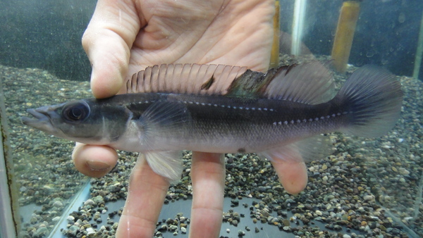 これ大好き!!長く伸びた遊離軟条がすごいインパクトで、まるで深海魚みたいです!見るからに弱々しい感じのする魚ですが、実は意外と丈夫だったりして、人工飼料にも餌付いちゃいます!もちろん純淡水でOKですよ!pHの低い古い水とか、一度に水を換え過ぎたりとかはダメですが、そういうのに気を付けてあげれば普通に飼えますよ!