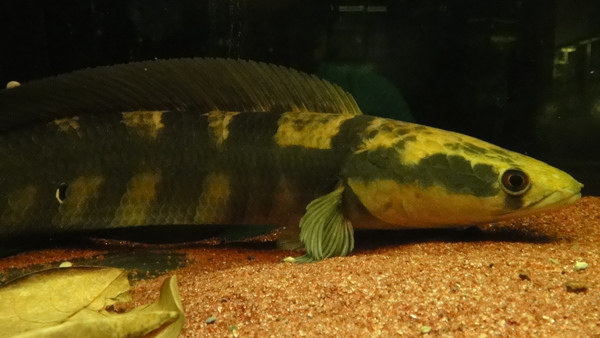 激レアスネークヘッドのメラノプテルス入荷です!店頭にはアンフィ(バルカ)もいるし、エマスもいるし、ショートのエンペラーもいるし、大型スネークヘッドの希少種がいろいろ在庫でいましたので、メラノプテルスも揃えたいなぁと思っていたんですよね!そしたら問屋さんに輸入されたので思わず仕入れてしまいました!!インドネシアのカプアス河上流に生息するとっても珍しい種類で、流通量はかなり少なく最近ではアンフィよりも全然希少ですね。まだ入荷したばかりなので本来の体色ではありませんが、落ち着けば全身がオレンジに発色しとても美しいスネークヘッドになります!大型スネークヘッドファン必見です!上段の画像です。2つの画像は同一個体です。