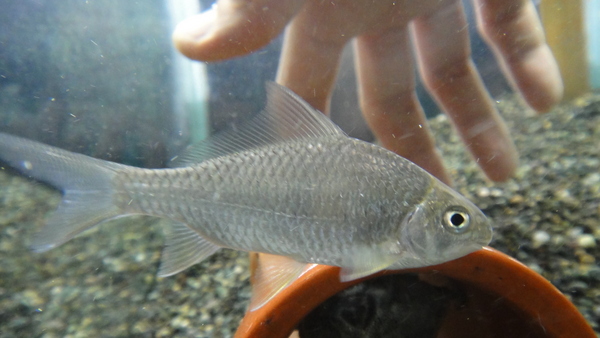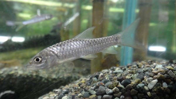 インボイスはゴールデンブラインドバガリウスでしたが、う~ん、ゴールデンと言うにはちょっと無理があるかな??なので名前はライトカラーブラインドバガリウスに変更です!先天性と思われますが、両目がほとんど(左目はほぼ完全に)皮膚に埋もれています。目としての機能はほとんど果たしていなさそうな感じです。ゴールデンとかそういう黄変個体みたいな色彩変異ではなく視力が弱い(ほとんど無い?)ことから体色が薄くなってしまったというような変異個体だと思われます。今回普通のバガリウスも一緒に入荷しましたので、あえて同じ水槽で、しかも黒い砂が敷いてあって黒いスクリーンが貼ってある水槽に入れてみました!こんな黒水槽でも明らかに体色は薄く、比べてもらえればノーマル個体との違いははっきりしています!ちょっと好みの分かれそうなところではありますが、ワイルド個体ですし、珍しいことには間違いありません!もちろんこの1匹のみが輸入されただけの1点物です!マニアの方いかがですか?