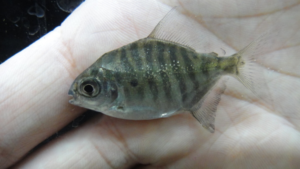 こっちはレインボーの中でも入荷の多いトカンチンス河上流産です。入荷が多いと言っても流通量は知れてる程度。いつでもどこでも売っているという魚ではありませんからね。幼魚はガンメタな黒っぽい体色が特徴ですが、成長につれて変化していきますので、ここから育てたら面白いですよ!左下の画像です。