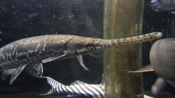これも数日前に入荷していたのですが、入荷時に尾ビレがだいぶ傷んでいたり、各ヒレの縁や鼻先が赤くうっ血していたりで、着状態がイマイチでしたのでキレイに治ってから撮影してホームページに載せるつもりだったのですが、すいません、これもトリートメントが済む前にご来店のお客様から売約となってしまいました。現状でヒレや鼻先のうっ血は治まり、あとは尾ビレが再生するだけというところまでは回復しております。やっぱりガーなので基本的に生命力は強いというか再生能力は高いですね。数日でここまで回復するとはさすがです。売れてしまった個体でしたが、吻が長くてかっこいい個体でしたのでとりあえず画像だけでもと思いアップさせていただきました。下段の画像です。2つの画像は同一個体です。