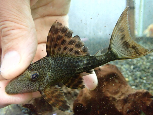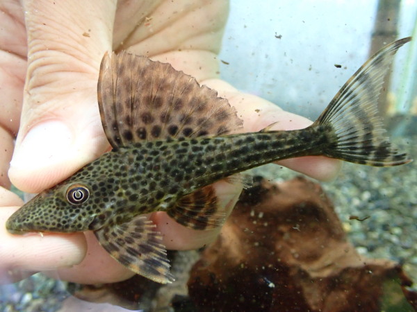 ペルーレッドパナクェと一緒に輸入された謎プレコ。たぶんヒポプストムスの仲間ではないかと思いますが、クプープレコとペルーレッドパナクェを足して2で割ったようなちょっと細身でスポットの目立つかっこいいプレコです。入荷は少数のみなのです!中段右の画像です。