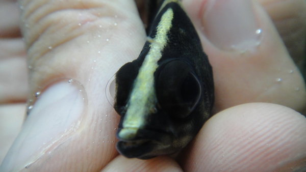 言わなければあまり気にならないかもしれませんが、両目が少し飛び出てます・・・。両目とも同じ感じだし、出目金みたいに眼球が全部飛び出してるわけでもないので意外と違和感はないかも??でも普通の個体に比べればやっぱり目が出ていますので、今回は特別価格で販売致します!本当は¥14800で販売するつもりで仕入れたので大赤字です!成長につれて治ってしまうかもしれませんので、気にならない方には超オススメです!中段右、左下の画像です。2つの画像は同一個体です。