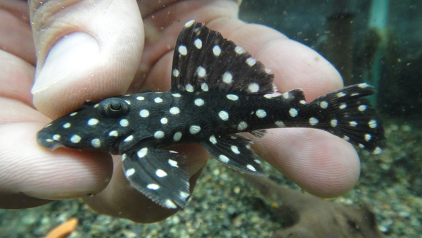 黒地に白い水玉で人気のプレコです!白黒水玉プレコの中ではこれが一番人気だと思います!右下の画像です。