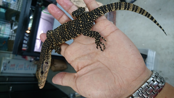 スマトラ産らしいイエロースポットのキレイなベビーが入荷です!尾切れ、爪欠けのない完品です!大人しくてハンドリングもOKな個体なので上手に育てればベタ馴れになりそうですね!最終的にはかなり大きくなるトカゲです。なので衝動買いはダメですよ!飼育は計画的に!!左上の画像です。