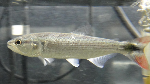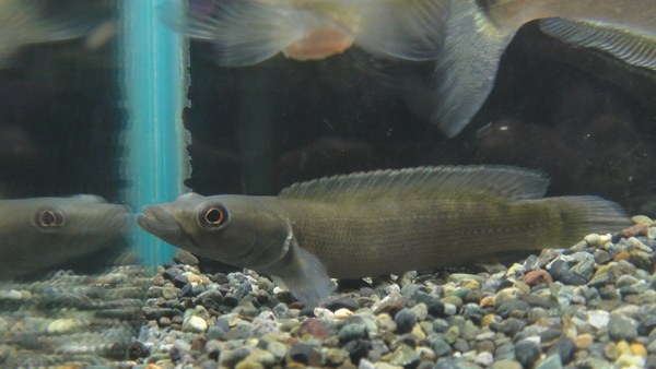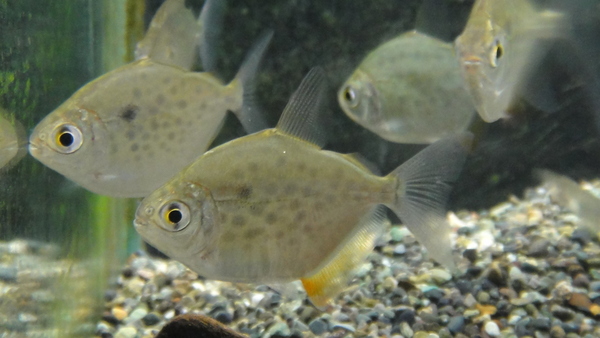 やっと来ました!この魚の入荷をずっと待ってたんです!!Salminus hilariiという種類で、普通のドラドよりも小型で、尖った顔付き、ややスレンダーな体型、15cmを超えるあたりから発色する体側の赤いスポットが特徴です。体側に赤いスポットが出た個体は本当にキレイですよ!まだ小さいので体側のスポットは発色していませんが、尾ビレは真っ赤です!これからの発色が楽しみですね!入荷の少ない激レアな魚ですので、マニアの方はお見逃しなく!!左上の画像です。
