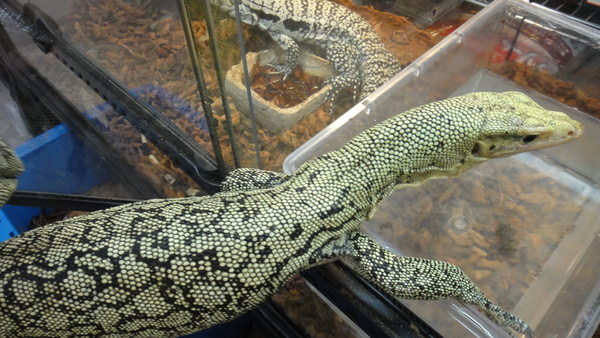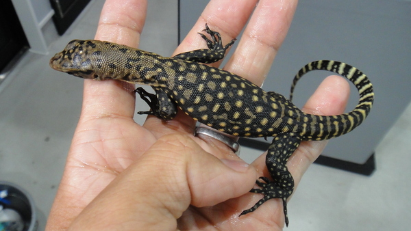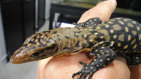 4年前に仕入れたアダルトのイエローヘッドモニターのメスが卵を産んだんですが、それが孵っちゃいました!すごいことにそのメス個体はこの4年間ずっと単独でイエローヘッドのオスはもちろん、他のトカゲとも一切接触させたことはありません!ずっと単独で飼育してきました!つまり交尾することなく1匹で産んだ卵が孵っちゃったんです!ただし、このメス親はもともとワイルドのアダルトで入荷した個体ですので入荷以前に野生で交尾をしていた可能性は十分にありますが、4年以上もお腹に精子を貯めておくことができるんでしょうかね?それにコモドオオトカゲやサルファモニターでは完全な単為生殖が確認されていますので、このメス親が卵を産んだ時ももしかしたらもしかするかも?なんて思って卵を保管しておいたんです。そうしたら卵が胚発生して本当に孵っちゃったんです!超びっくりです!100%ではありませんが単為生殖の可能性も十分に考えられるで”クローン”としてみました!メス親はスクリーマーと呼ばれるタイプで背中の模様の抜けのいいとてもキレイな個体なのですが、”クローン”ベビーもお母さんの特徴を受け継いだようでベビーにして首や頭の模様が抜けた極美個体なんです!このベビーがメスなら、成熟して単為生殖をする可能性もあるのでこの個体は育てて検証してみようと思います。メス親もまた新しい卵を産むかもしれないので売らずにとっておこうと思います。売り物じゃないトカゲの話で申し訳ありませんが、こんなこともあったんだよということでご報告までにアップさせていただきました。上段、中段の画像が今回産まれた”クローン”ベビーの画像で下段がお母さんの画像です。