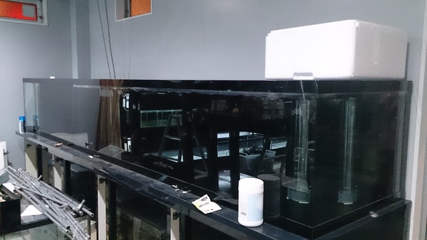 照明といえば、前回ご紹介した2400と1500の水槽ですが、水は回してありますが、実はこの水槽も照明の準備がまだなんですよね。早めに照明器具を手配して水槽をライトアップしたいですね!そんな2400には昨日からショートボディのシーパーチが入っています!50cm近くある個体ですが2400に1匹だけなので魚が小さく見えますね。この水槽には明日ステキな魚が入る予定です!入ったらまた紹介しますのでお楽しみに!