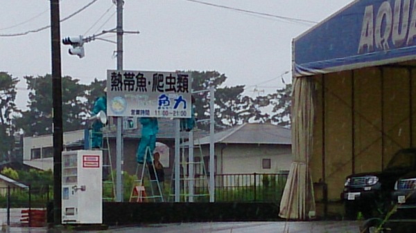 今日は看板もできました!でも照明の工事はまだなので暗くなるとほとんど見えませんが・・・。水槽台の電気工事と合わせてこっちも電気屋さんにお願いしてあるのでもう少しですね!