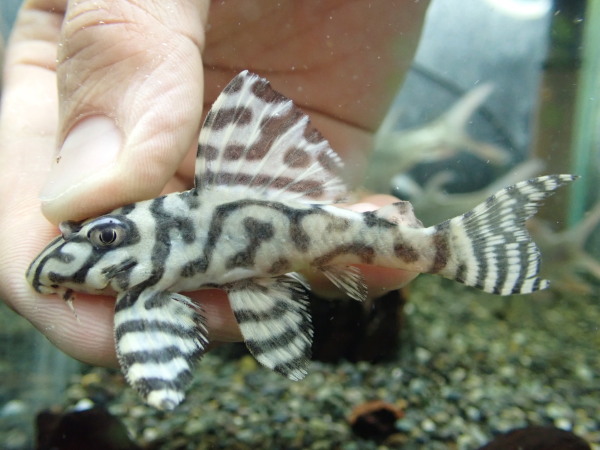 最大で12cmほどなので小さな水槽でも飼育できます。シルバーの体色に黒い水玉模様がとてもキレイ。小さくてもピメロディアらしいかっこいいシルエットでサイズ以上に存在感のある魚です。丈夫で飼いやすいし値段もお手頃でオススメのナマズです。中段右の画像です。