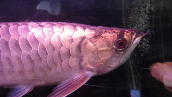 下取り個体につき超大特価!ドリームフィッシュPUREAROWANAブランドのSPLENDOR RED GOLDです。スーパーレッドと過背金のハイブリッドになりますが、ゴールデンヘッドで6列目まで光ってるので極上の過背金龍にしか見えませんね。言われなければほとんどの人はこれがハイブリッドだとは気が付かないと思います。しかもこの個体はまだ1歳位の若い個体で、登録票の輸入年月日は平成27年6月5日になっています。この若さでこの発色とは正直驚きです・・・。ただ残念なことに両方のエラ蓋の縁の形が少々歪んでいるのと、背中側の後頭部が少しだけですがぼこっとしています。エラは前の飼い主の方がエラ捲れの手術をしたようなのですが、エラを切るタイミングが遅かったためにエラ蓋の硬い部分も少しカットしちゃったみたい・・・。なので歪な形で再生してしまっています。エラ捲れの手術をする場合は硬い部分まで捲れてしまう前に手術しないとダメですよ!頭の後ろのぼこぼこはまだ若い個体なので成長につれて目立たなくはなっていくと思います、ただし約束はできませんけど・・・。それ以外は目たれやアゴずれもありませんし、発色は素晴らしいので本当に勿体ない個体です。欠点の程度は画像でご確認ください。これだけキレイな個体ですので、多少の欠点があってもこの値段ならかなりお買い得だと思います!この位の欠点なら混泳水槽とかだったら全然気にならないのでは?!なので混泳用とかにオススメです!画像は全て同一個体です。
