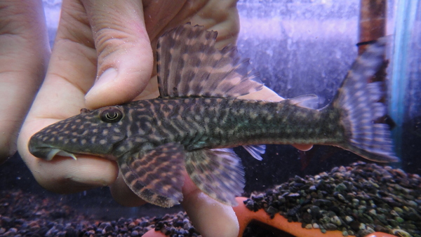 ゴイアス産のレアなアンジェリカスプレコの仲間が入荷です!濃い焦げ茶色の体にオレンジがかった明るい赤茶色のスポットやワームスポットが入ったキレイなプレコです。ここ数年はゴイアスから魚が来ることはほとんどありませんでしたのでとっても珍しいと思います!左下の画像です。