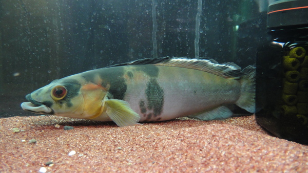 胸ビレの付け根が黒くなってる純淡水で飼えてすごく大きくなる種類のイシモチです。これは丈夫で飼い易くてオススメですよ!