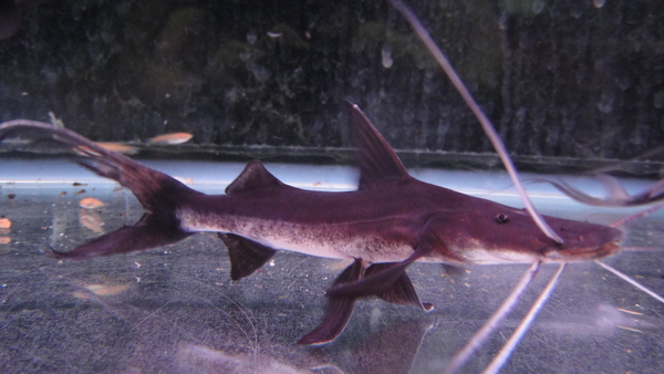 これも大好きなナマズです!普段は他のナマズに混じって小さいのがたまに輸入されるくらいのナマズなんですが、今回は大きめの個体が1匹だけ輸入されました!小さいのから飼い込まれた個体よりもこのサイズで輸入された個体の方が何故か顔付きが長く鋭いんですよね!体色の青味も濃く素晴らしいです!両方の胸ビレの棘がスレて先が短くなっていますが、歪んだり曲がったりはしていないので飼い込んであげればキレイに元通り再生すると思います!中段右の画像です。