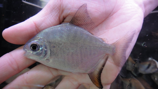 シルバーダラーのような銀色の丸いカラシンです。正確な種類はよく分かりませんが、そんなに高くないし、とりあえず育ててみてはどうでしょう??中型カラシンマニアの方にはオススメですよ!