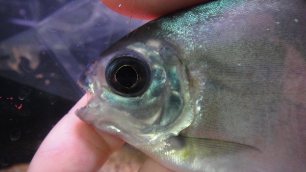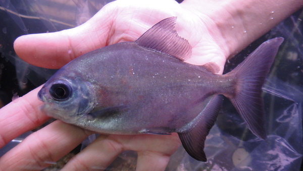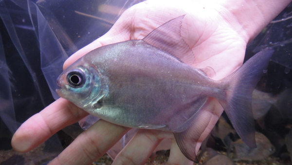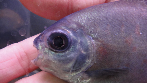 これも変わってますよ!今回アルア産のパクーは3匹入荷しましたが、この1匹は他の2匹よりも体高が低めで、やや顔が大きく、体色が黒っぽいです。赤シミも一番目立っていますね。こいつもエラ蓋の縁はカットしてありますので特別価格です!かなりオススメの個体ですので、マニアの方はお見逃しなく!!下段の画像です。2つの画像は同一個体です。