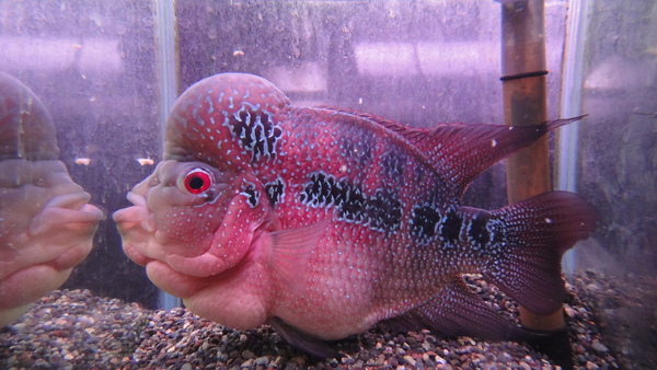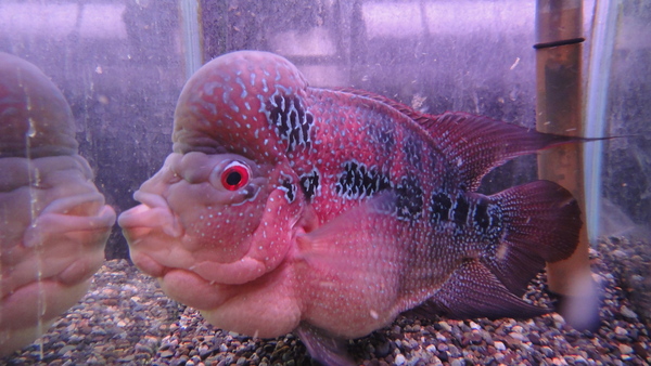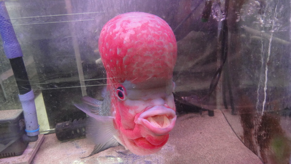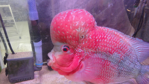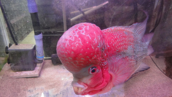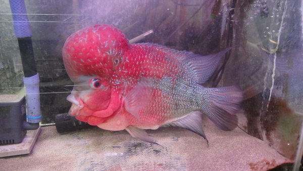すごいの来ました!頭デカすぎでコブダイみたいです!頭まで真っ赤に発色しててスタイルも良いですし、キズや欠点もありません!30cm位あるのですごく立派で見応えありますよ!今回は特別に超大特価です!このクラスの個体なら普通はこの値段の倍以上はすると思います!この位頭の大きい個体は発送すると、一時的にコブが浮いたようになり頭を上向きにして泳いだり、コブが少し小さくなることがありますが、新しい環境に慣れて落ち着くと普通に泳ぐようになりますし、コブも元の大きさに戻りますので、通販でお買い上げの際はご了承下さい。上段、中段の画像です。4つの画像は同一個体です。