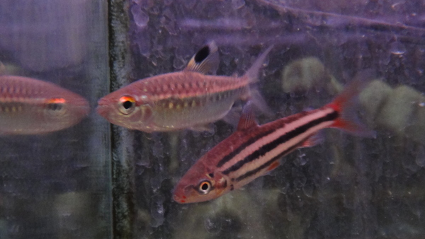 目の上がオレンジに光るキレイなアフリカンカラシンです!サイズが小さすぎないのもいいですね!コンゴテトラとかブリキヌスとかそういうの好きな人には特にオススメ!右下の画像の上の魚です。