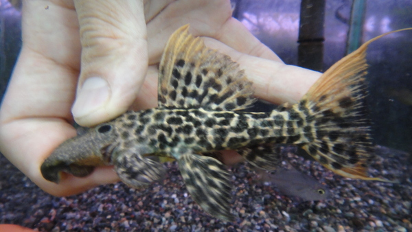 デカいです!尾ビレの先まで入れれば余裕で40超えです!色がとんでいますがしばらく飼い込んで落ち着けばかなりキレイな発色をしてくれそうです!胸鰭のトゲも強烈ですごくかっこいい個体ですよ!このサイズでこの値段はかなりお買い得ですよ!中段の画像です。2つの画像は同一個体です。