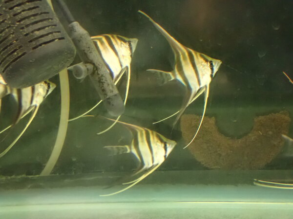 普段あんまり扱いませんが何となく仕入れてみました。ベビーよりは育ってるやや大きめなサイズ。背ビレの先から腹ビレの先までの高さはピンと伸ばした状態だと目測で12cm位はありそう、10cmは軽く超えてますね。着状態は良好ですぐにでも販売できそうな感じですが、一応しばらくは店でストックして様子見ようと思います。1~2週間経ったらまたホームページに載せますね。追記:トリートメント済んでから販売する予定でしたがノントリートメントの現状で全部売約になりました。下段の画像です。