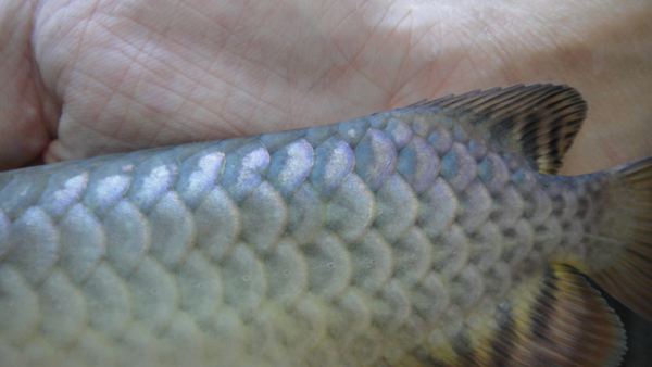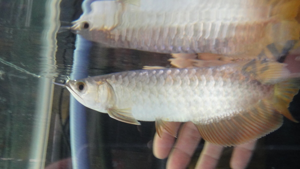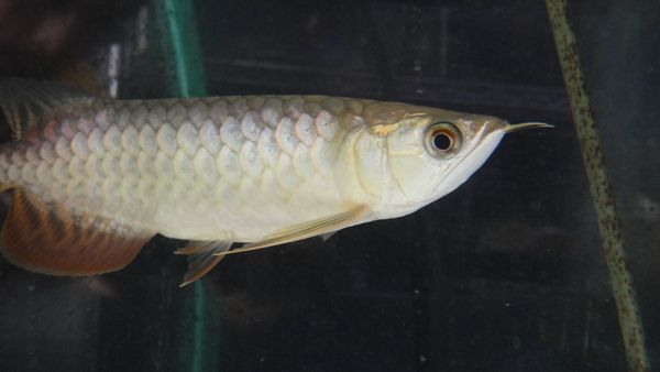 同じ血統の高背がもう1匹来ています!こっちもキレイで欠点など一切無い完品個体です!予算の都合で過背は買えないけど、上がりのいいアロワナが欲しいなぁ。なんていう方には超オススメ!この血統は当たればは背中まで巻いちゃう個体も全然います!最低でも5列目、運が良ければ6列目まで上がります!これは飼育環境や飼い方にも左右されますが、後は運!!宝くじじゃないですが、運が良ければ普通に過背金に化けちゃいますよ!!下段の画像です。画像が悪いですが、実物は顔もかっこいいし、スタイルも良いです!