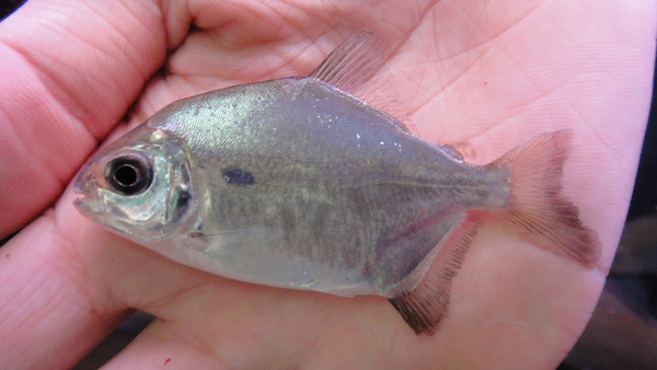 とんでもない秘境から謎のパクーが入荷しました!アリノス川というのはタパジョス水系の最上流域の支流になります。タパジョス河は上流域でまずテレスピレス河とジュルエナ河にわかれます。そのジュルエナ河の上流部でさらに分かれた支流がアリノス河になります。こんな最上流部の細い支流から魚が来ることはほとんどありません!なので今回のパクーも次回の入荷は全くの未定です!今回ごく少数が輸入されたアリノス産のパクーのうち、1匹だけ明らかに種類が違うと思われる個体が混じっていたのですが、それがこの11cmの個体です。目が大きくラバーアスーのような顔ですが、口元は横に大きく裂けていて鼻先は丸く、ラバーアスーとドルフィンパクーを足して2で割ったような不思議な個体です。パクーマニア必見です!こんなのもう2度とお目にかかれないかもしれませんよ!?左上の画像です。