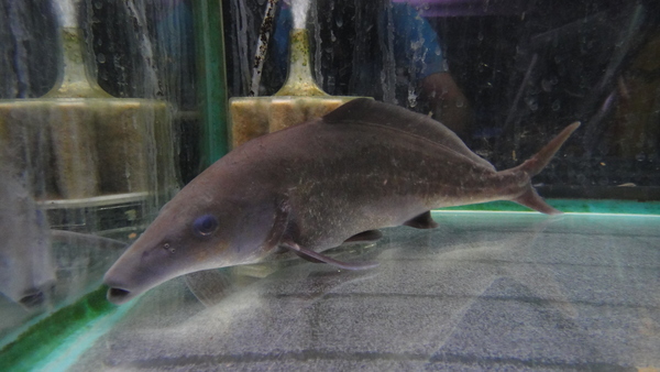 さらにでかいのも1匹来てます!こっちは48cmありますが、残念なことに胸ビレが片方細くなってます。小さい時に他の魚に齧られたりしたんですかね?ブリード物の難あり個体ではありますが、50cm近いモルミルスが¥29800なんて奇跡的な値段だと思いますよ!モルミルスの仲間は微弱な電気を発することが知られていますが、このサイズになると全然微弱じゃありません!サイズを測るときに衣装ケースに入れてメジャーを当てておさえてたら、いきなりバチンって衝撃がきてびっくりしました!モルミルスの電力をなめてましたね・・・。中段の画像です。