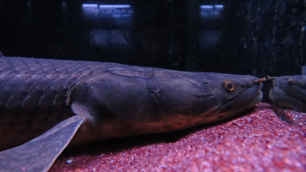 ワイルド ポリプテルス アンソルギィ ギニア 50cm 上段、中段左の画像です。3つの画像は同一個体です。